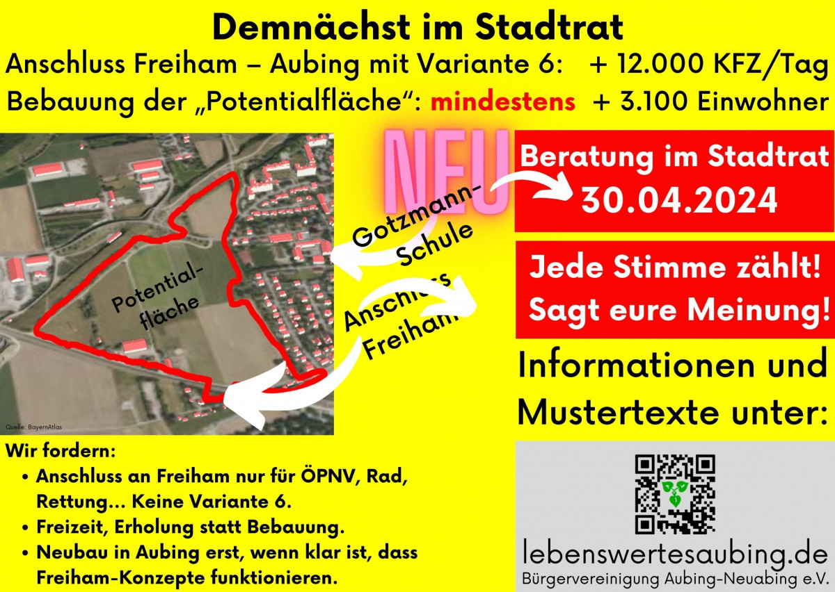 Die @spdmuenchen / @Gruene_Muenchen Mehrheit stimmt den Plänen für die Bebauung der Potentialfläche und der Variante 6 für den Anschluss Freiham-Aubing zu. Am 3.Juli ist das Thema auf der Tagesordnung der Vollversammlung des Stadtrats.
